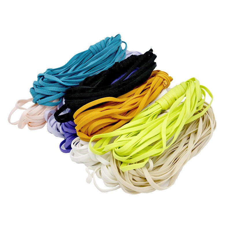 Elastic wide flat slip-on shoe laces, elastic bands, latex threads, folded edging fabric, spandex elastic webbing
